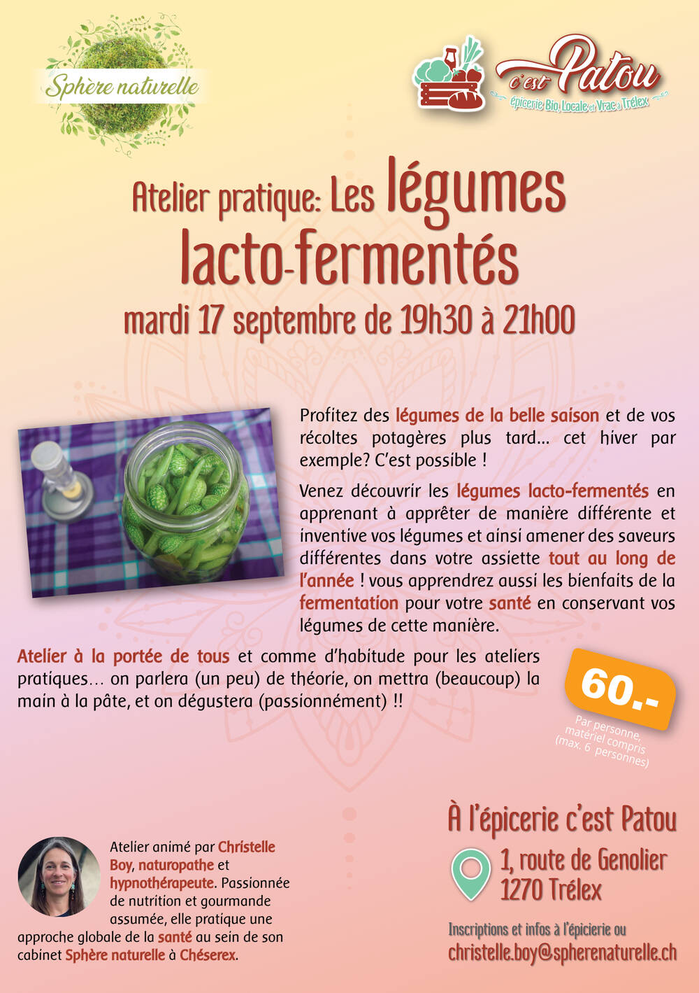 Mardi 17 septembre venez nous rejoindre à l'épicerie pour une soirée sur d'initiation aux légumes fermentés: comment profiter des légumes de la belle saison et de vos récoltes potagères plus tard... cet hiver par exemple?C'est l'occasion d'apprendre à apprêter de manière différente et inventive vos légumes et ainsi amener des saveurs différentes dans votre assiette tout au long de l’année ! Vous entendrez aussi les bienfaits de la fermentation pour votre santé en conservant vos légumes de cette manière.