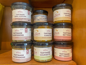 Actuellement, nous vous proposons plus de 35 terrines et autres tartinades disséminées un peu partout dans l'épicerie ou en vente en ligne sur notre site internet.