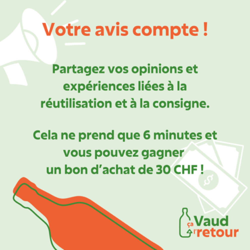 Dans le cadre du projet pilote "Ca vaud l’retour" dont nous sommes fiers de participer, nous avons besoin de vous pour nous donner votre avis en répondant au sondage.