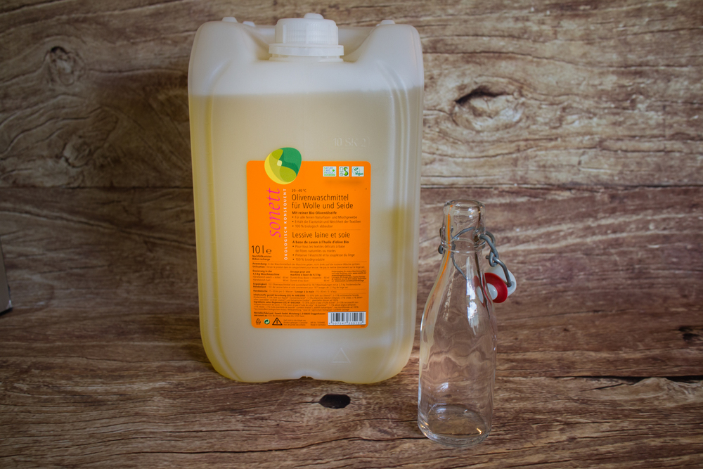 Lessive liquide laine et soie à base de savon à l'huile d'olive bio.