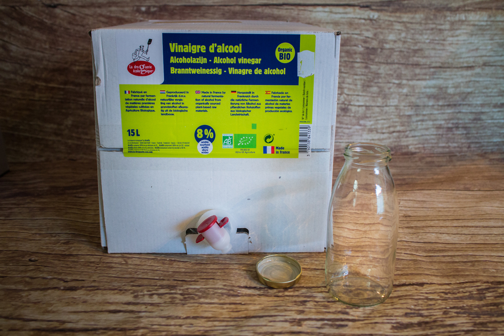 Le vinaigre d’alcool 8% est une solution aqueuse comprenant de l’acide acétique titré à 8%. Traditionnellement utilisé en usage alimentaire dans toutes les cuisines du monde, il constitue aussi un remarquable produit de ménage, multi-usage, écologique et bon marché. Ses propriétés sont très nombreuses : conservateur alimentaire, dégraissant, désodorisant, détartrant, nettoyant … et ses usages très étendus : alimentation, ménage, hygiène familiale et cosmétiques.